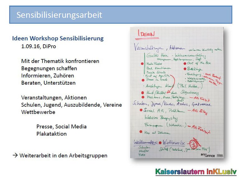 Als Ergänzung zum Ideen-Workshop "Sensibilisierung" haben wir im Rahmen der Sitzung weitere Ideen gesammelt.